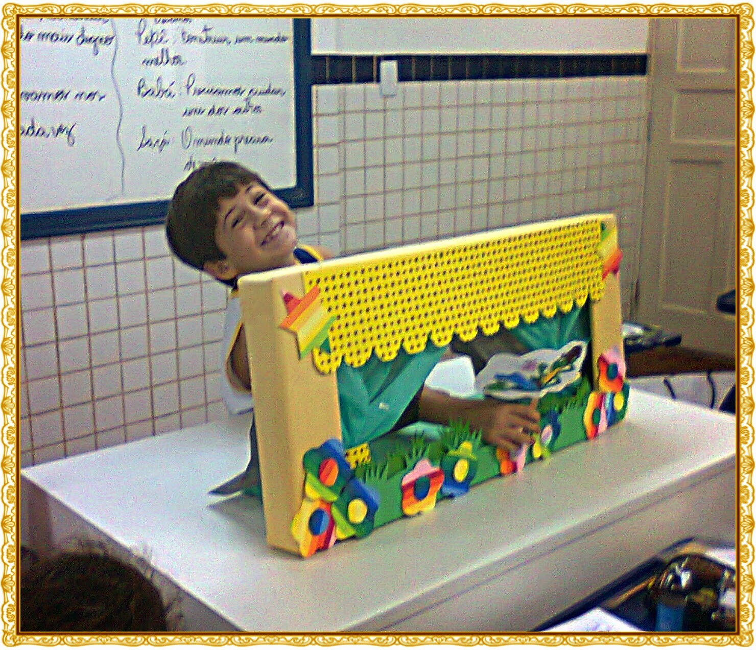 Os alunos do 3º ano trabalharam o desenvolvimento de habilidades que facilitem as relações saudáveis entre escola, amigos e a família. Em grupos, escreveram um texto e apresentaram os diálogos utilizando os personagens da Escola da Inteligência, que foram confeccionados em papel e palito por eles mesmos. Já o teatro foi confeccionado pela professora Amália.